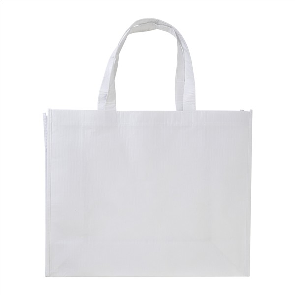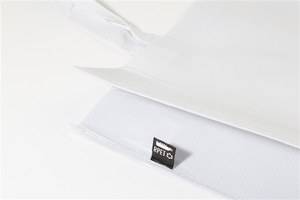 Laminowana torba z RPET na zakupy ze średniej długości uchwytami. Poliester RPET 105 g/m2. Z metką RPET.