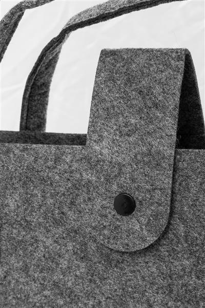 Torba na zakupy z filcu RPET z dnem, zapięciem na guziki i krótkimi uchwytami. Z charakterystyczną metką RPET.