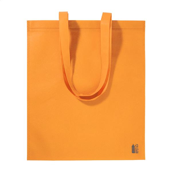 Torba na zakupy z włókniny RPET z długimi uchwytami, 70 g/m2. Z charakterystycznym metką RPET.