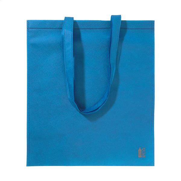 Torba na zakupy z włókniny RPET z długimi uchwytami, 70 g/m2. Z charakterystycznym metką RPET.