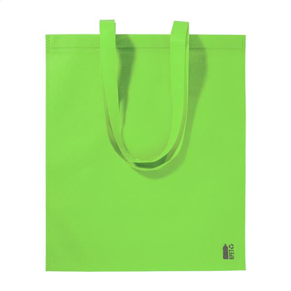 Torba na zakupy z włókniny RPET z długimi uchwytami, 70 g/m2. Z charakterystycznym metką RPET.