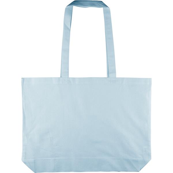 Torba na zakupy 140 g/m2, o pojemności 16 litrów, posiada długie uchwyty umożliwiające noszenie na ramieniu (2,5 x 70 cm), ikona OEKO-TEX na metce, produkt wykonany z farbowanej bawełny