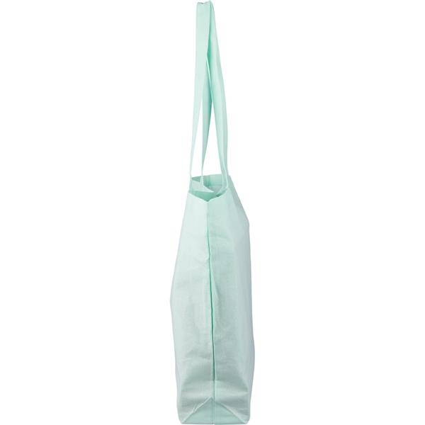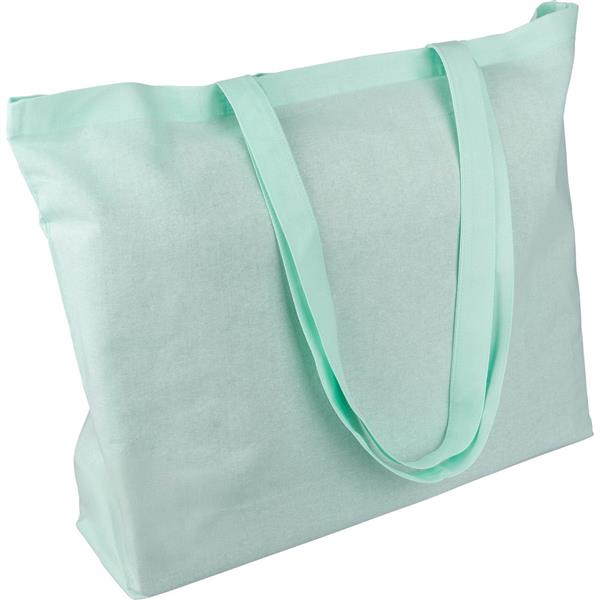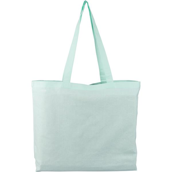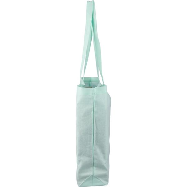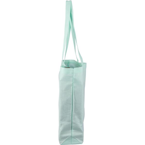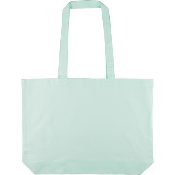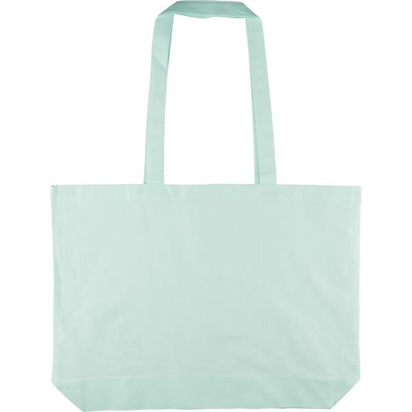 Torba na zakupy 140 g/m2, o pojemności 16 litrów, posiada długie uchwyty umożliwiające noszenie na ramieniu (2,5 x 70 cm), ikona OEKO-TEX na metce, produkt wykonany z farbowanej bawełny