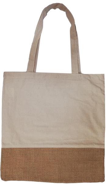 Bawełniana torba na zakupy z elementami z juty. Długie rączki. 160 g / m2.