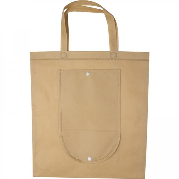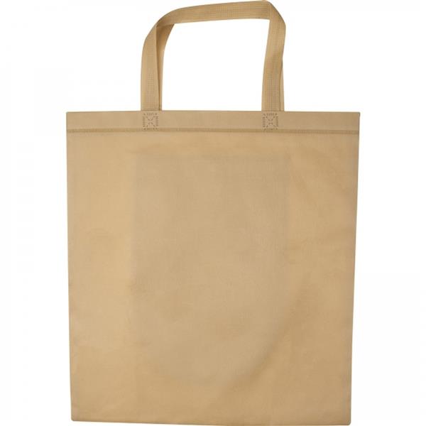 Składana torba non woven z krótkimi uszami, gramatura 80g/m2. Wymiar torby po rozłożeniu: 38 x 42 cm, rączki 40 cm.