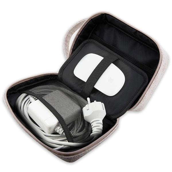 Wnętrze torby jest niezwykle funkcjonalne – liczne przegródki pozwalają na komfortowe przechowywanie niezbędnych drobnych akcesoriów. Torebka posiada zewnętrzny port zakończony złączem USB, zaś wnętrze torby skrywa kabel zakończony złączem USB.
