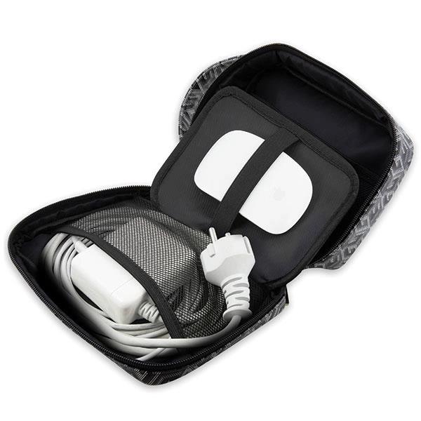 Wnętrze torby jest niezwykle funkcjonalne – liczne przegródki pozwalają na komfortowe przechowywanie niezbędnych drobnych akcesoriów. Torebka posiada zewnętrzny port zakończony złączem USB, zaś wnętrze torby skrywa kabel zakończony złączem USB.