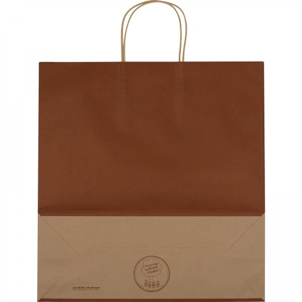 Duża torba wykonana z papieru pochodzącego z recyklingu, o gramaturze 120g/m2, posiada dwa mocne uchwyty.