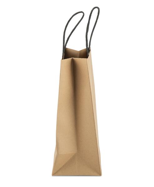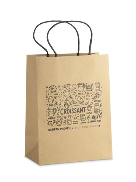 Torba papierowa PAKLO w rozmiarze średnim to klasyczne, estetyczne opakowanie wykonane z mocnego papieru kraftowego o gramaturze 200 g. Posiada skręcane uchwyty z czarnego papieru, które dobrze komponują się z naturalnym kolorem torby i zapewniają wygodne przenoszenie. Dzięki prostej formie idealnie sprawdza się jako torba prezentowa lub opakowanie firmowe na materiały promocyjne i drobne zestawy upominkowe. Produkt można znakować, dopasowując go do identyfikacji marki.