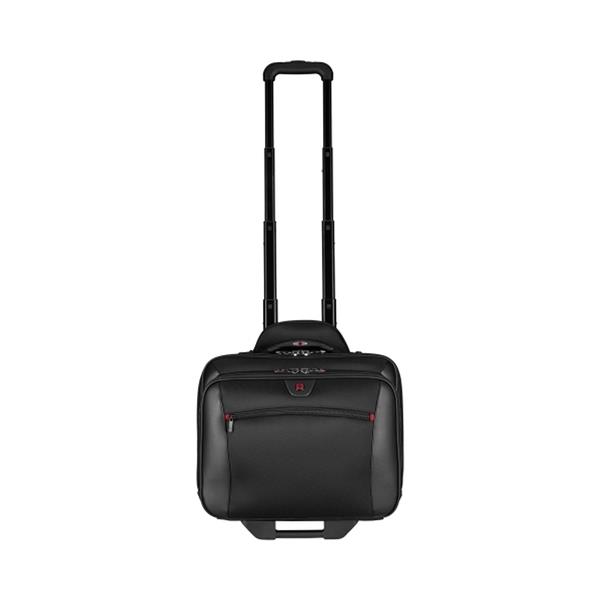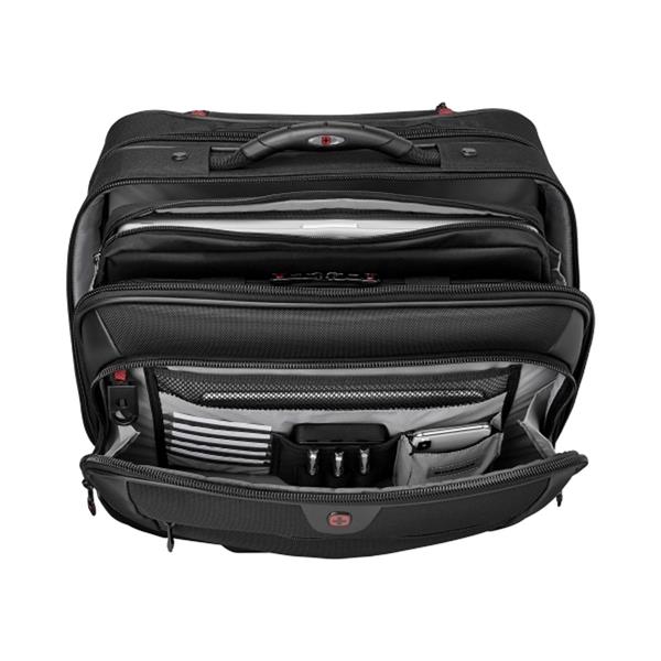 • Podróże służbowe stają się swobodne za sprawą tego dwuczęściowego zestawu biznesowego na kółkach zaprojektowanego z myślą o osiągnięciu najlepszej organizacji. Składa się on z przegrody dedykowanej na podróże biznesowe z noclegiem oraz zdejmowalnej, dopasowanej płaskiej torby na laptopa, zapewniającej dodatkowy komfort • Torba Comp-U-Roller posiada usztywnioną przegrodę, która chroni laptopa o rozmiarze do 17”/43 cm • Dopasowana do zestawu zdejmowana płaska torba na laptopa chroni laptopa o rozmiarze do 15,4`/39 cm i oferuje wygodną alternatywę dla torby Comp-U-Roller • Wygodna teleskopowa rączka • Kółka z łatwym poślizgiem • Przegroda na podróże z noclegiem może pomieścić ubrania na następny dzień • Organizator na niezbędne akcesoria • Rozdzielacz na dokumenty • Zamki błyskawiczne z blokadą umożliwiają w razie potrzeby zabezpieczenie przegrody laptopa przy użyciu blokady