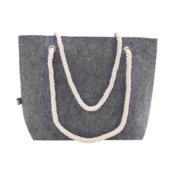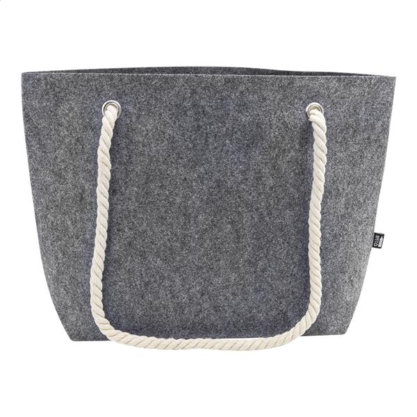 Torba plażowa lub na zakupy z filcu RPET z uchwytami z bawełnianego sznurka i klinem u dołu. Z charakterystyczną metką RPET.
