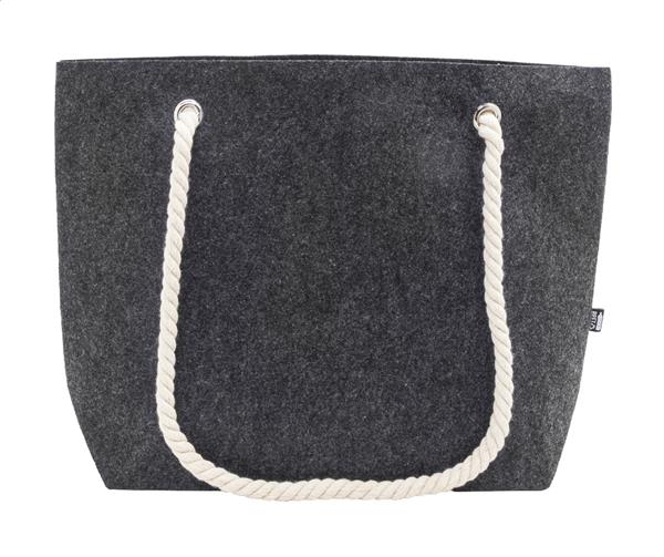 Torba plażowa lub na zakupy z filcu RPET z uchwytami z bawełnianego sznurka i klinem u dołu. Z charakterystyczną metką RPET.