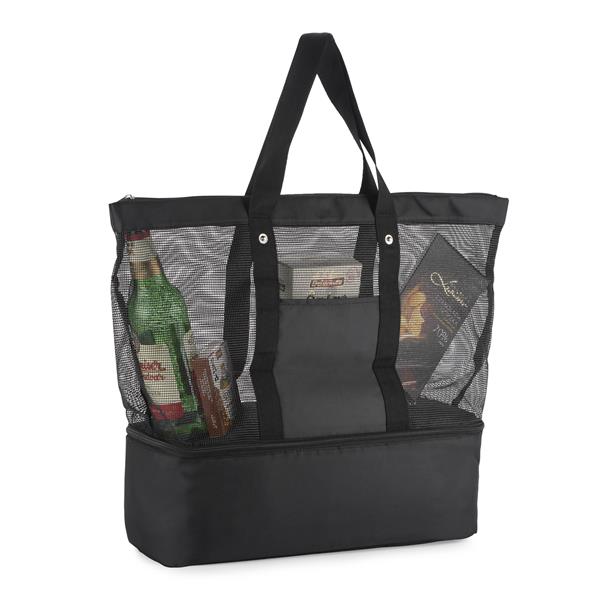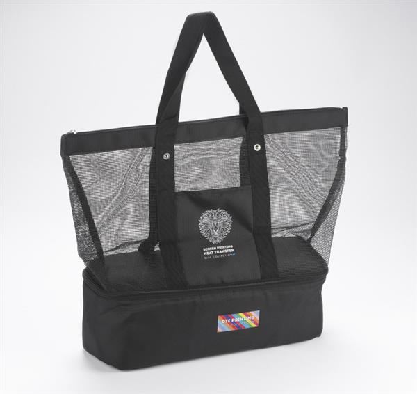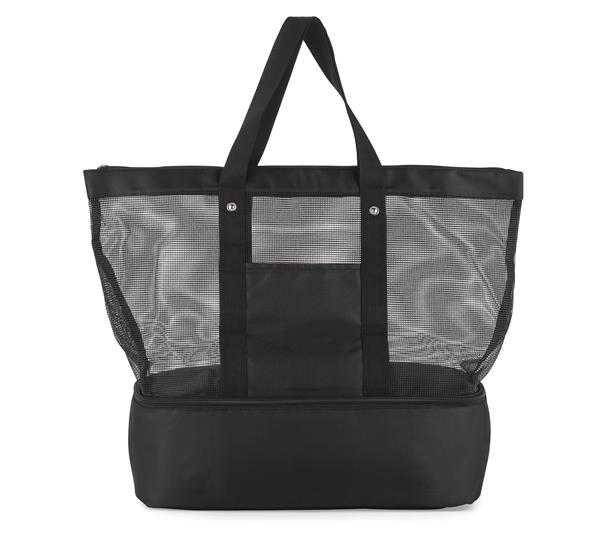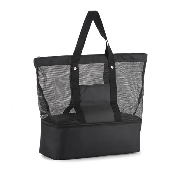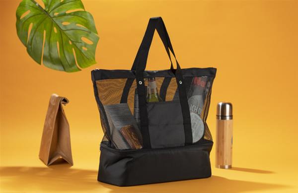 Torba plażowa wykonana z poliestru i siateczki. Bardzo pojemna. Dodatkowo posiada komorę z izolacją termiczną PEVA o wymiarach 12 x 13 x 42cm.