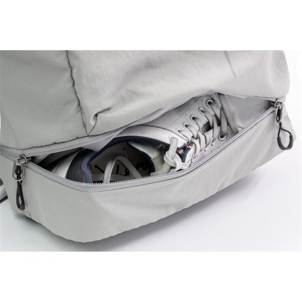 Torba podróżna BrandCharger Hauler o pojemności 23 litrów, warstwa wodoodporna, kieszeń na laptopa, kieszeń na buty, dwie kieszenie boczne, pasek do przymocowania do walizki, odblaskowe elementy, produkt wykonany z nylonu z recyklingu