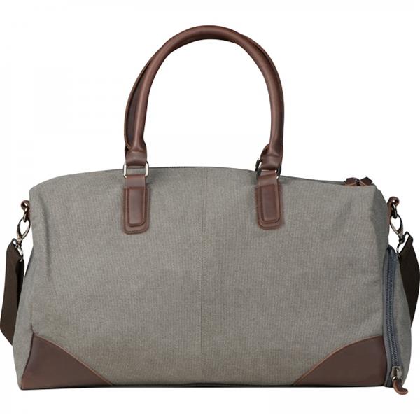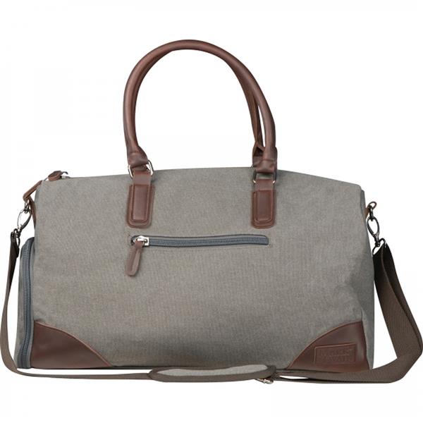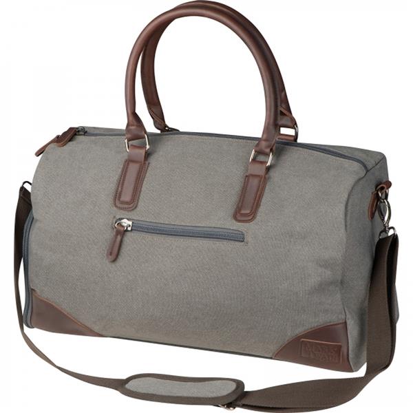 Stylowa i użyteczna torba podróżna marki Mark Twain, wykonana wytrzymałego płóciennego materiału z kontrastującymi wstawkami z ekoskóry. Posiada długi, odpinanay pasek do noszenia na ramieniu.