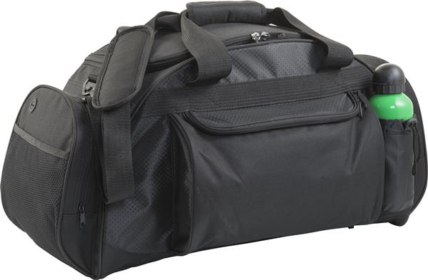 Torba sportowa, podróżna z kieszenią z przodu na zamek, boczna kieszeń na butelkę, kieszonka na słuchawki, kieszeń główna na zamek