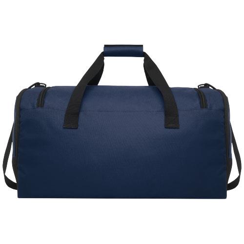 Trwała torba podróżna wykonana w 100% z poużytkowego plastiku z recyklingu, co przyczynia się do zmniejszenia ilości odpadów plastikowych. Wyposażona w dużą komorę główną i przednią kieszeń na suwak, wyściełany pasek na ramię i wyściełane uchwyty. Do produkcji tej torby przetworzono około 27 butelek.