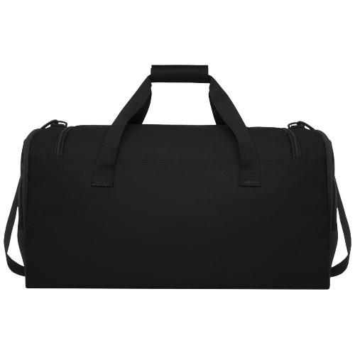 Trwała torba podróżna wykonana w 100% z poużytkowego plastiku z recyklingu, co przyczynia się do zmniejszenia ilości odpadów plastikowych. Wyposażona w dużą komorę główną i przednią kieszeń na suwak, wyściełany pasek na ramię i wyściełane uchwyty. Do produkcji tej torby przetworzono około 27 butelek.