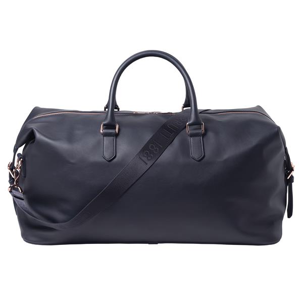 Torba weekendowa `Zoom`, o minimalistycznym wzornictwie i nowoczesnym wyglądzie, wykonana jest z gładkiego i lekkiego granatowego materiału z błyszczącym złoto-różowym wzorem. Rozmiar: 560 x 270 x 280 mm Kolor: Niebieski