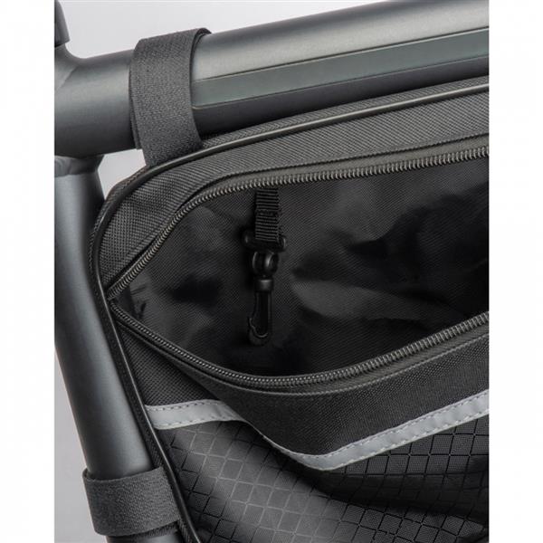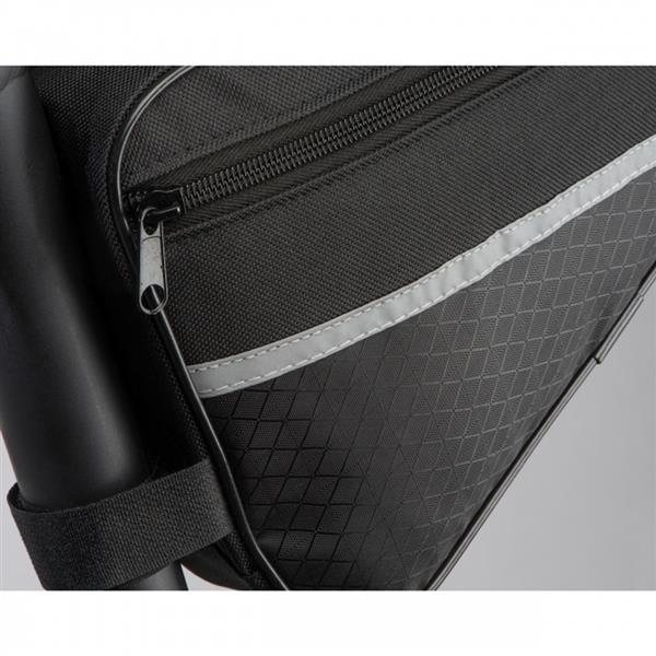 Torba na rower, wykonana z wytrzymałego poliestru 600D, z paskami odblaskowymi. Torbę można łatwo zamontować na ramie roweru.