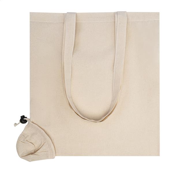 Składana torba bawełniana z długimi uchwytami. 100% bawełna organiczna, 120 g/m2.