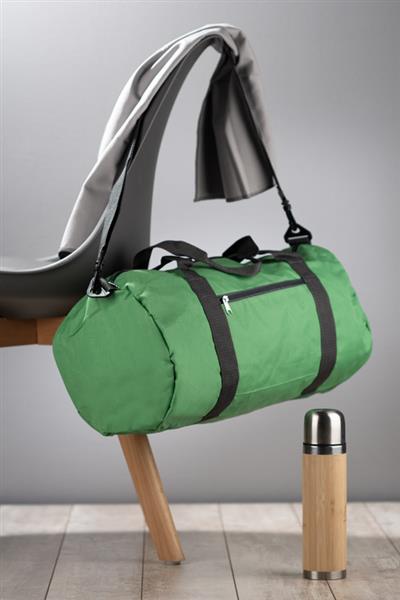 Torba sportowa o okrągłym kształcie wykonana z poliestru 300D. Posiada jedną zapinaną na zamek kieszeń zewnętrzną. Jest wyposażona w dwa uchwyty oraz regulowany długi pasek, dzięki czemu torbę można trzymać w dłoni lub nosić ją na ramieniu.