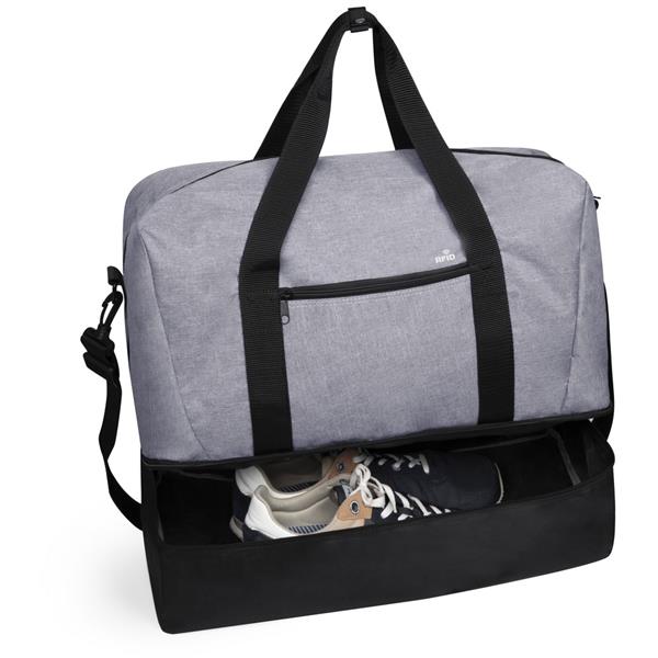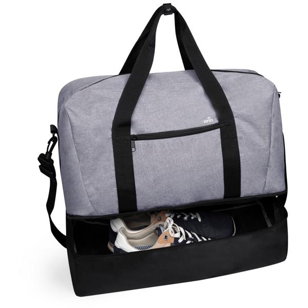 Torba sportowa, podróżna z ochroną RFID, przegroda główna na zamek błyskawiczny, 1 kieszeń na buty oraz 1 przednia kieszeń na zamek błyskawiczny, uchwyty i regulowany pasek na ramię