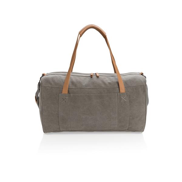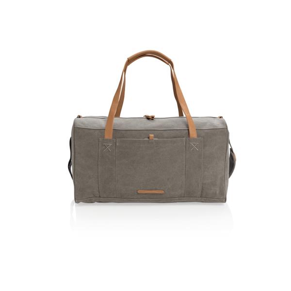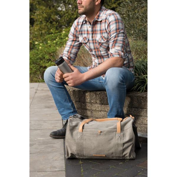 Torba sportowa, podróżna, wykonana z wytrzymałego i stylowego płótna, odpinany i regulowany pasek na ramię w komplecie, nie zawiera PVC, ślad węglowy produktu: 8,15 kg CO2