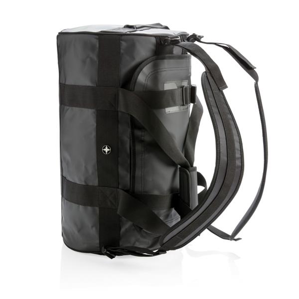 Torba sportowa, podróżna, plecak, główna przegroda, kieszeń siateczkowa, 2 małe kieszonki, torbę można łatwo przekształcić w plecak, solidna konstrukcja, komfortowe paski na ramię