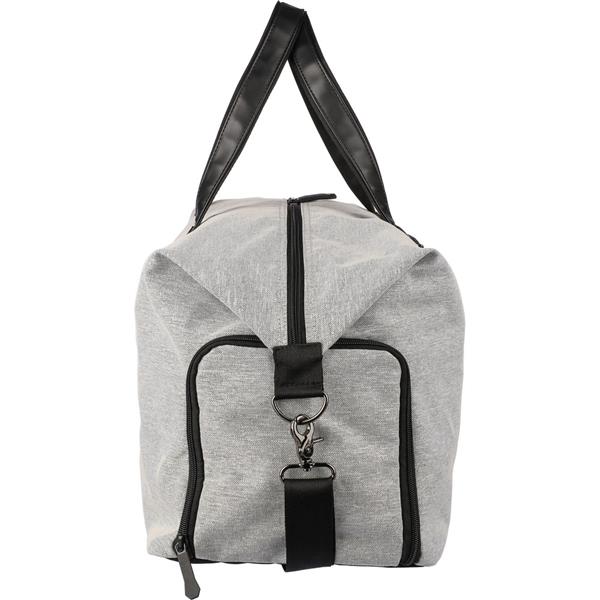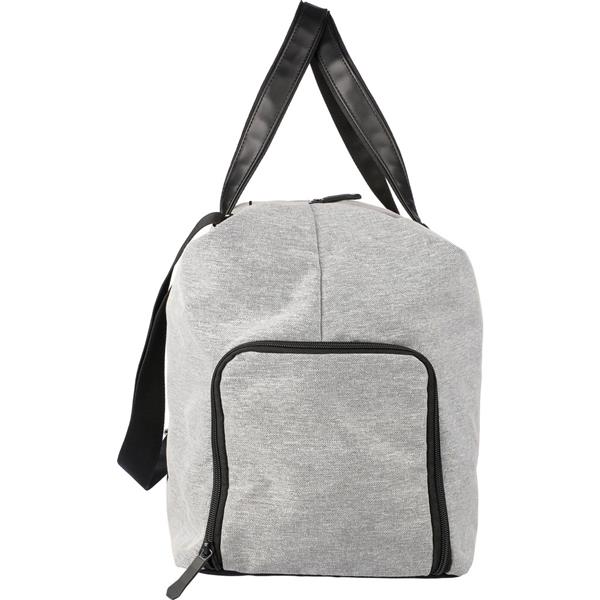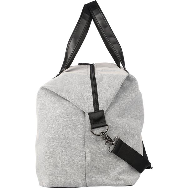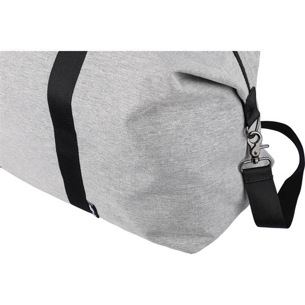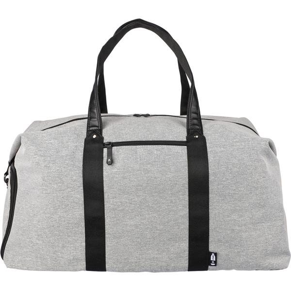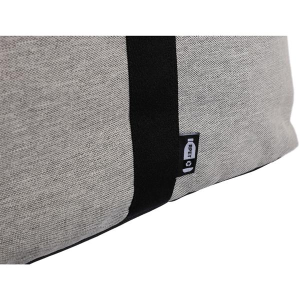 Torba sportowa, podróżna z podszewką, wewnątrz znajduje się pianka i płyta PE o grubości 1 mm, mała przednia komora zapinana na zamek, duża komora zapinana na zamek, kieszeń na buty z boku, regulowany pasek na ramię, dwa duże uchwyty do noszenia w dłoni, produkt wykonany z RPET, poliestru i PU