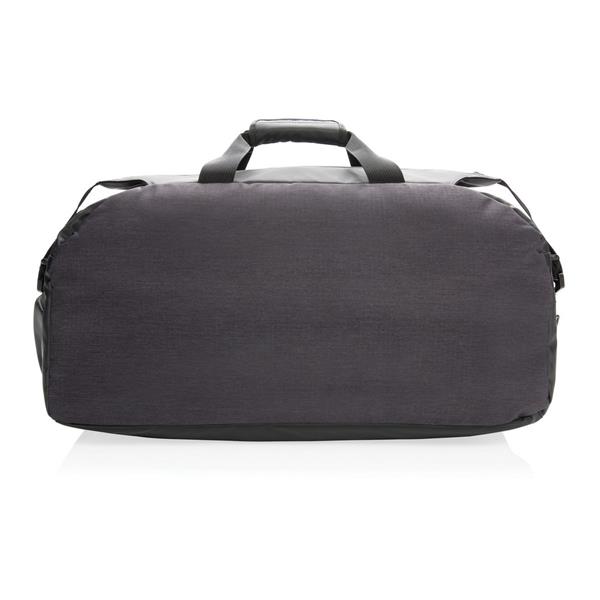 Torba sportowa, podróżna, duża przegroda główna, kieszeń przednia, zintegrowany port USB do ładowania (power-bank nie jest dołączony), dodatkowe kieszenie po bokach, posiada miejsce na karty w pasku na ramię, ślad węglowy produktu: 5,92 kg CO2