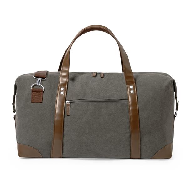 Torba sportowa, podróżna, wykonana z płótna, przegroda główna i kieszeń przednia na zamek błyskawiczny, wzmocnione narożniki, uchwyty i regulowany pasek na ramię