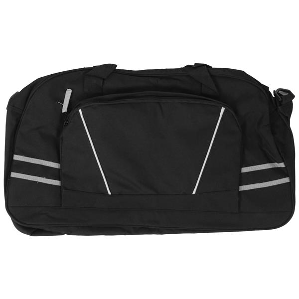 Torba sportowa, podróżna z dużą kieszenią przednią i połyskliwymi paskami, regulowany pasek na ramię