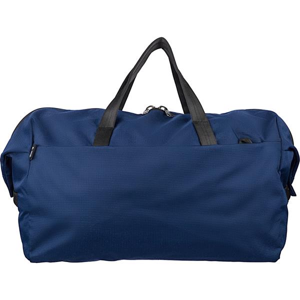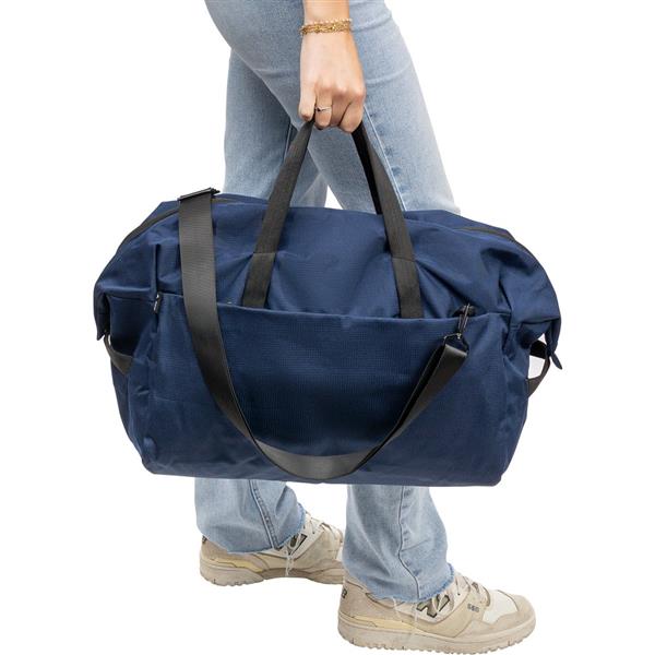 Torba sportowa, podróżna o pojemności 33 litrów, duża kieszeń zapinana na zamek, mała kieszeń przednia zapinana na zamek, kieszeń wewnętrzna zapinana na zamek, regulowany pasek do noszenia na ramieniu, dwa uchwyty ułatwiające noszenie, ikona OBP na metce, produkt wykonany z RPET 300D