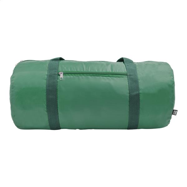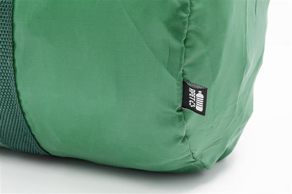 Torba sportowa RPET z główną komorą zapinaną na zamek, przednią kieszenią zapinaną na zamek i długimi uchwytami. Poliester RPET 190T z charakterystyczną metką RPET.
