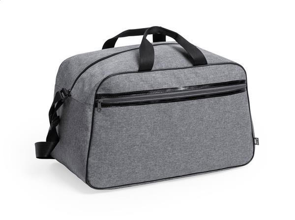 Torba sportowa RPET z 2 kieszeniami na suwak, regulowanym paskiem na ramię i podszewką z PVC. Z metką RPET. Poliester 600D RPET.