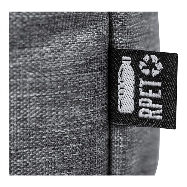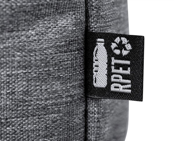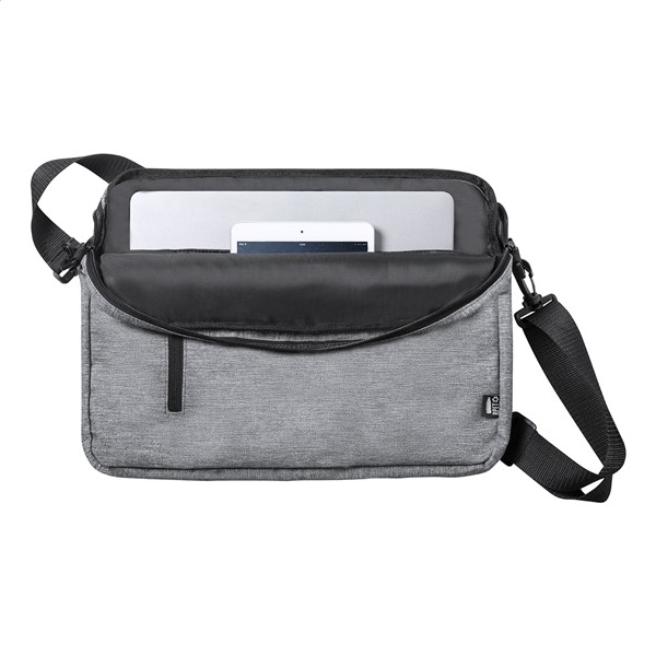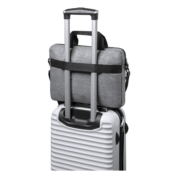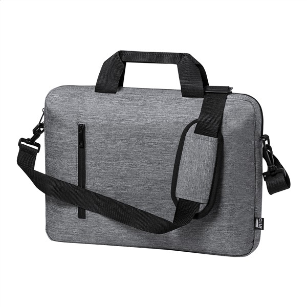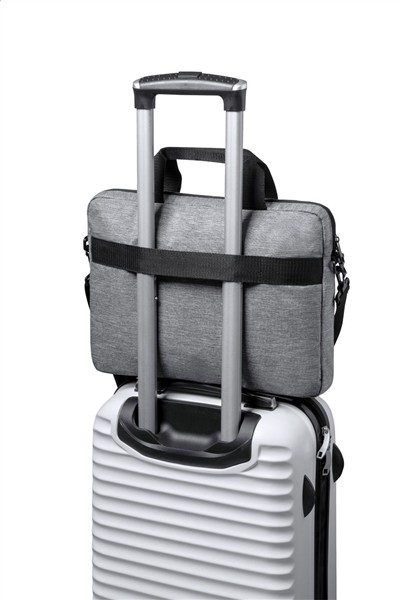 Torba na dokumenty z RPET z główną przegrodą zapinaną na zamek, regulowanym paskiem na ramię, paskiem do walizki, wyściełanymi przegrodami na laptopa (15 „) i tablet (10”). Poliester 600D RPET.