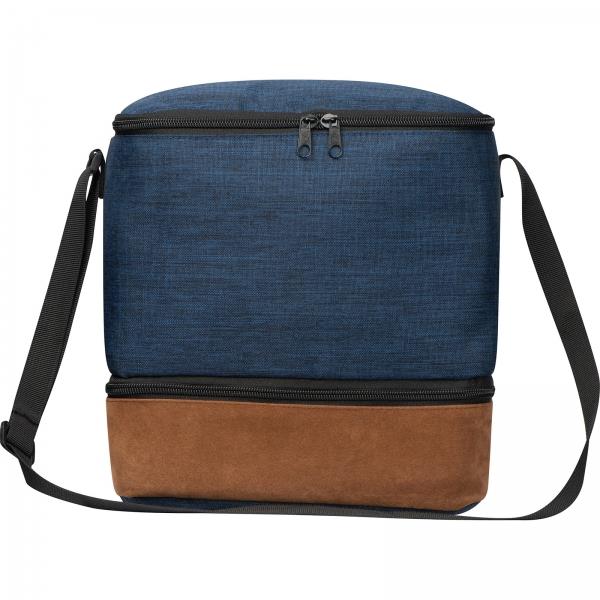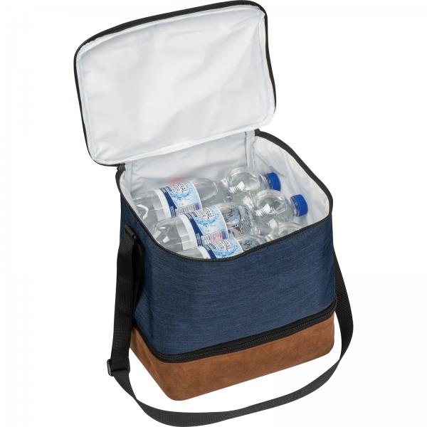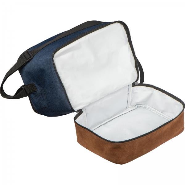 Duża torba termiczna z dwoma kieszeniami zapinanymi na zamek. Duża przegródka pomieści 5 litrów, a dodatkowa, mniejsza 2 litry.
