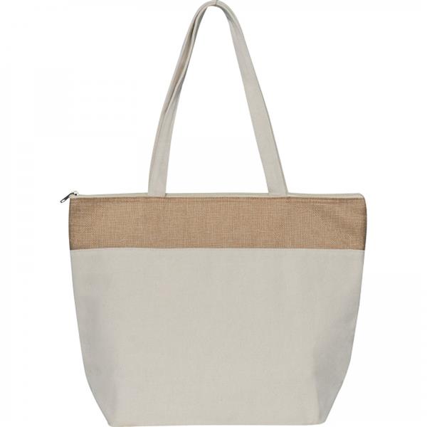 Torba termiczna zamykana na zamek, wykonana z bawełny o gramaturze 200g/m2 i juty.