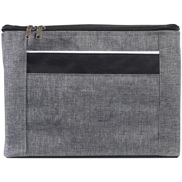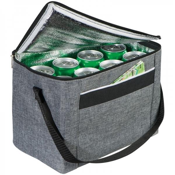 Torba termiczna wykonana z poliestru 300D oraz materiału non woven. Pomieści 6 lub 8 puszek, bądź butelek 0,5l. Posiada raczkę i przegrodę z przodu, zamykana na zamek błyskawiczny.