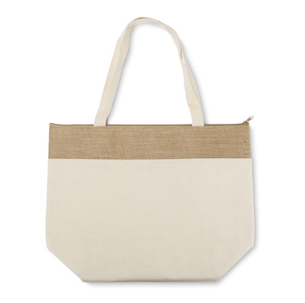 Bawełniana torba JUTO o gramaturze 340 g/m2 to wyjątkowo praktyczny gadżet reklamowy. Długie uchwyty torby zapewniają wygodę noszenia na ramieniu, a szerokie dno umożliwia łatwe pakowanie większych przedmiotów. Jutowe wykończenie torby JUTO nadaje jej naturalny charakter i wyróżnia ją spośród innych modeli. Największym atutem torby jest warstwa termoizolacyjna, która skutecznie utrzymuje temperaturę przenoszonych produktów, idealnie sprawdzając się na zakupy, pikniki czy plażę. Duża powierzchnia do znakowania pozwala na skuteczną promocję marki.