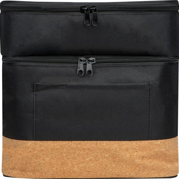 Torba termiczna wykonana z materiału RPET z korkowym dnem i długim regulowanym paskiem na ramię. Torba pomieści 6 puszek lub butelek o pojemności 500 ml.