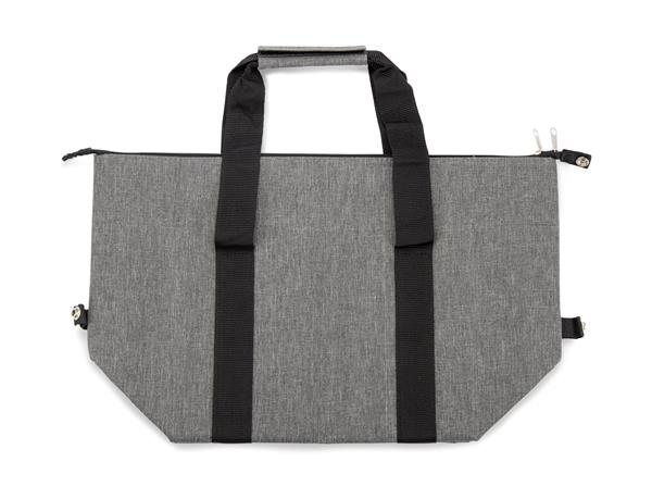 Torba termiczna PICO to wielofunkcyjny gadżet łączący nowoczesny design z praktycznym zastosowaniem. Może być używana jako klasyczna torba na zakupy z wygodnymi długimi uchwytami, a po złożeniu zamienia się w kompaktową torbę termiczną idealną do przenoszenia butelek lub produktów spożywczych. Stylowy wygląd w uniwersalnym szarym kolorze oraz solidne wykończenie czynią ją idealnym dodatkiem reklamowym dla klientów ceniących jakość i funkcjonalność. Sprawdzi się w każdej sytuacji, pomagając utrzymać świeżość przewożonych produktów.