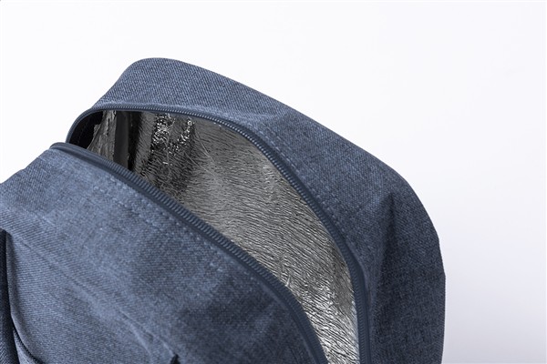 Torba termoizolacyjna RPET z przegrodą zapinaną na zamek, aluminiową wyściółką i uchwytami. Poliester 600D RPET, z charakterystyczną metką RPET.