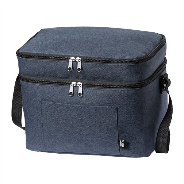 Torba termoizolacyjna z poliestru 600D RPET z wyściółką PEVA, z 2 komorami zapinanymi na suwak i regulowanym paskiem na ramię. Z charakterystyczną metką RPET.