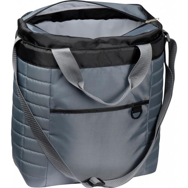 Torba chłodząca z pikowanym wzorem, wykonana z poliestru 420D. Torba posiada dużą komorę zapinaną na zamek i małą kieszeń z przodu, długi uchwyt na ramię i dwa krótkie do przenoszenia w ręce.