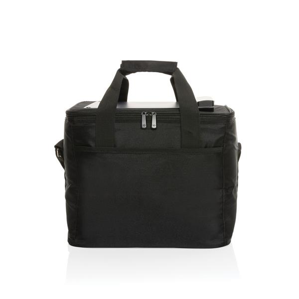 Torba termoizolacyjna, panel słoneczny 5W, moc ładowania solarnego 5V/1A, wyjścia USB i USB typu C, współczynnik konwersji panelu słonecznego: 21%, wodoodporna IPX6, wykonana z PET i ABS z recyklingu z certyfikatem RCS, posiada znacznik AWARE™, który gwarantuje, że wykorzystane materiały pochodzą z recyklingu