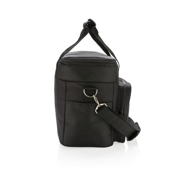 Torba termoizolacyjna, wykonana z poliestru 1680D i 600D, pojemna przegroda główna na zamek błyskawiczny, zmieści do 20 puszek 0,33 l, kieszeń z przodu, podwójnie wzmocnione uchwyty, regulowany pasek na ramię z możliwością odpięcia, ślad węglowy produktu: 4,08 kg CO2