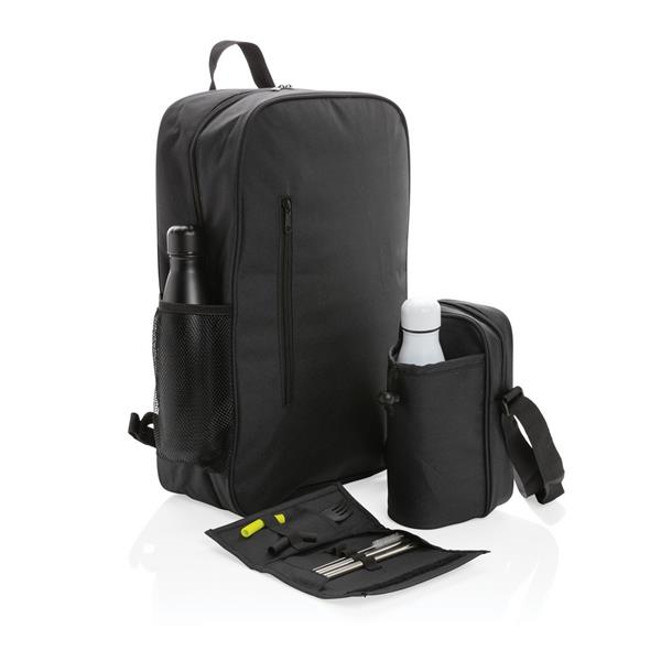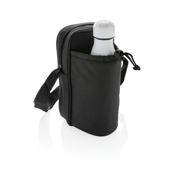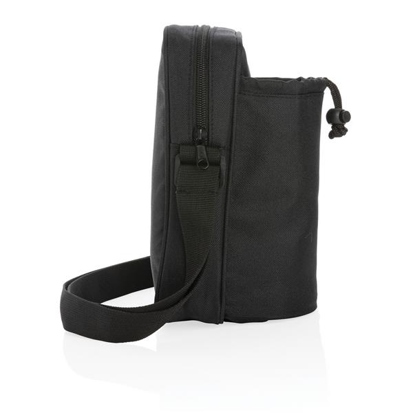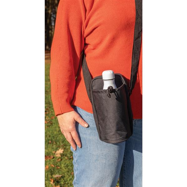 Termoizolacyjna torba na ramię, przegroda główna zamykana na zamek błyskawiczny, wewnątrz specjalna kieszeń na butelkę (max rozmiar 25×7,5 cm), regulowany pasek na ramię, wnętrze z poliestru 210D i PEVA, na zewnątrz poliester 600D, nie zawiera PVC, ślad węglowy produktu: 1,29 kg CO2