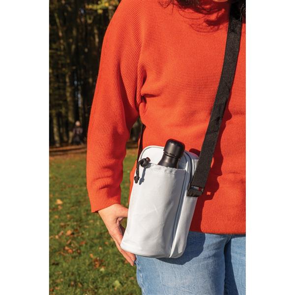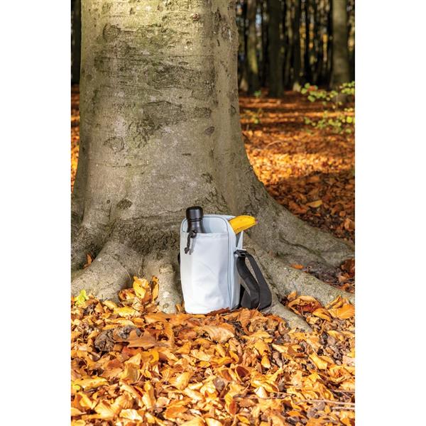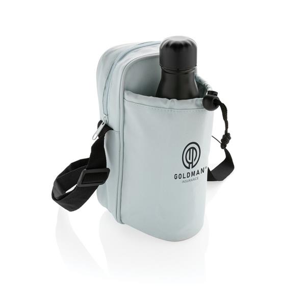 Termoizolacyjna torba na ramię, przegroda główna zamykana na zamek błyskawiczny, wewnątrz specjalna kieszeń na butelkę (max rozmiar 25×7,5 cm), regulowany pasek na ramię, wnętrze z poliestru 210D i PEVA, na zewnątrz poliester 600D, nie zawiera PVC, ślad węglowy produktu: 1,29 kg CO2